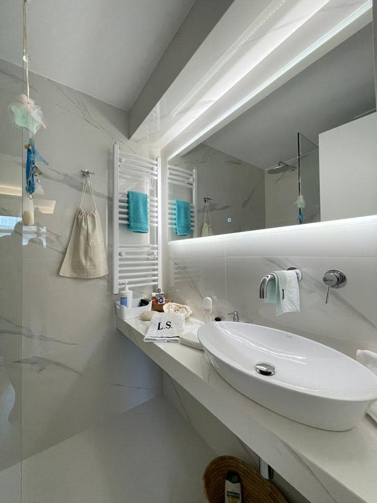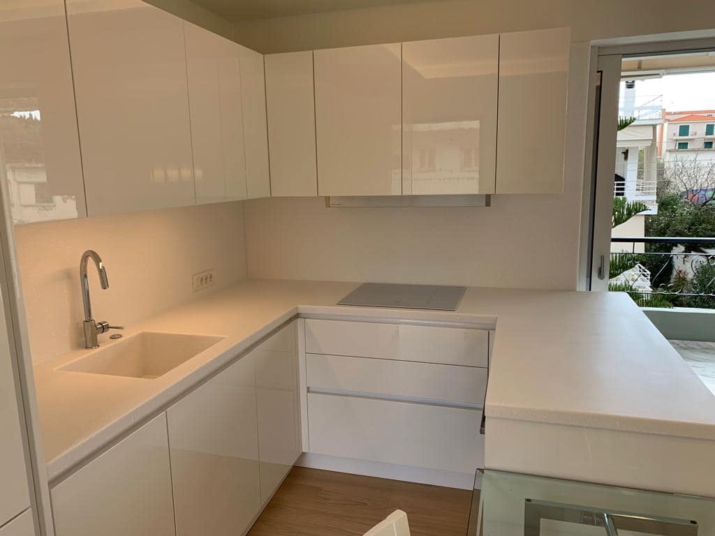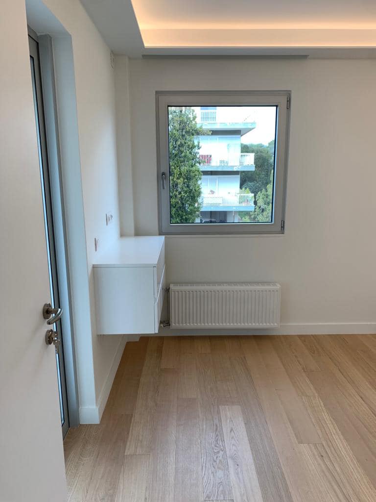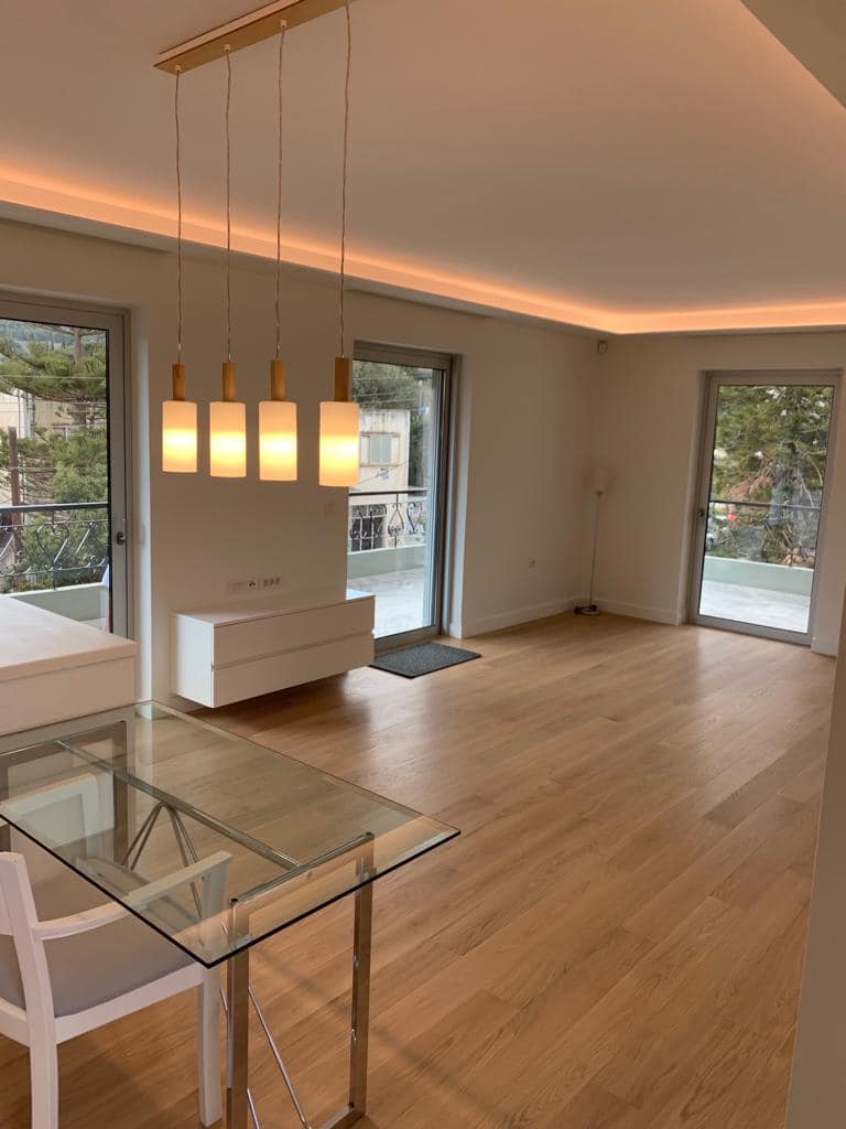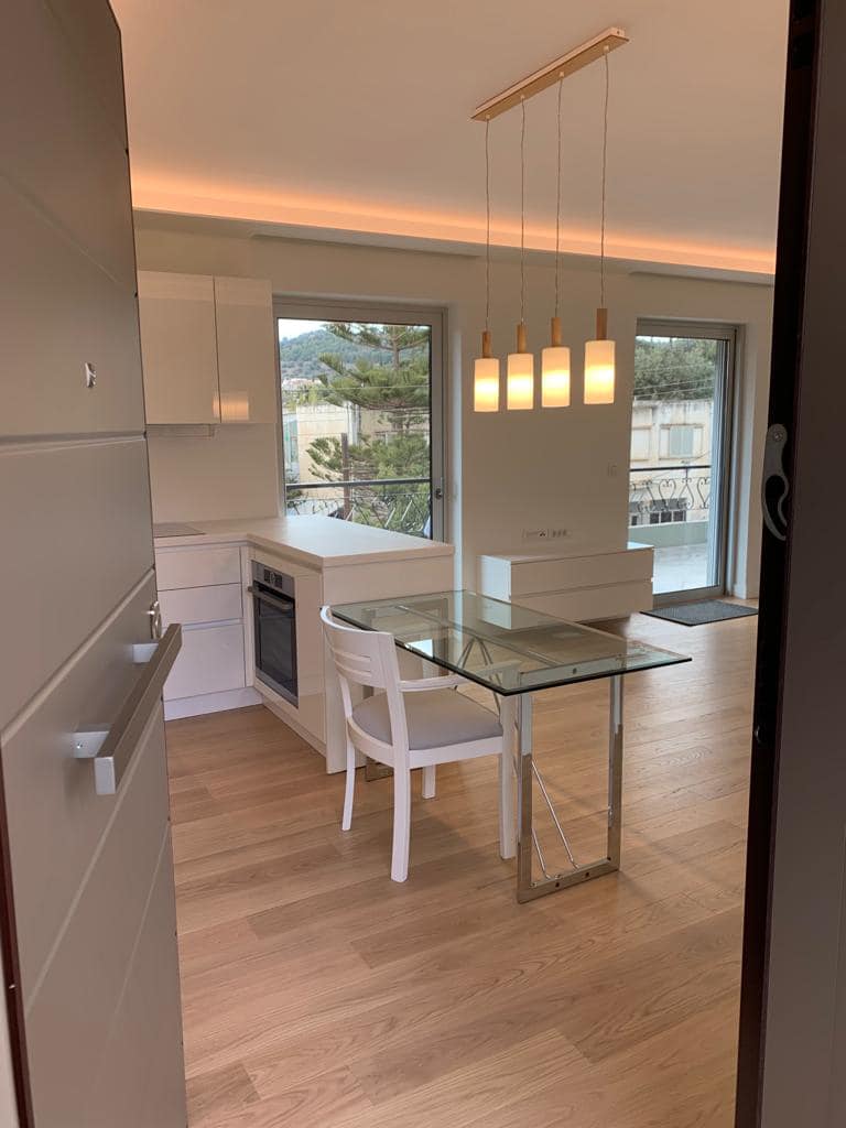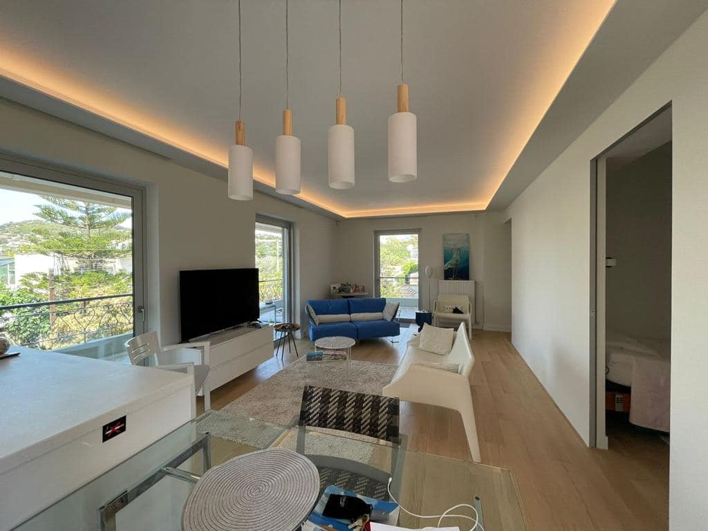 A beautiful 2nd floor apartment of 65 sqm located in a quiet neighborhood of Varkiza close to the market and only 5 minutes walking distance to the beach. Entering the property we meet a spacious and bright living - dining room , an open kitchen and large windows that let the sunlight fill the space and direct access to a large balcony with an amazing view. In addition, there are 2 bedrooms with their bathrooms and an open gated parking lot serving one car as well as available parking lots for guests.