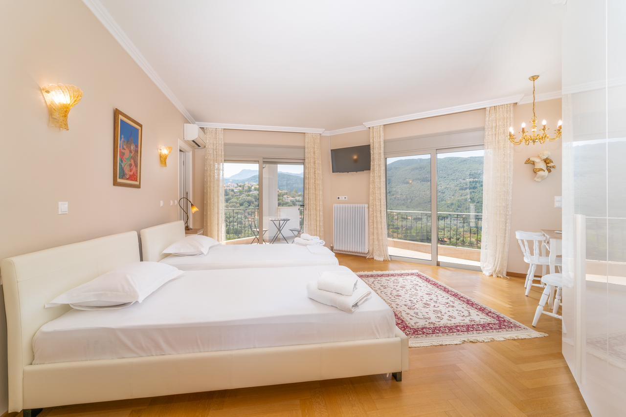 The wonderful outdoor space offers an infinity pool of 50 sq. m, a stone-built BBQ, parking area, where you can enjoy the relaxing views of the sea, the mountain, and the old castle of the island.