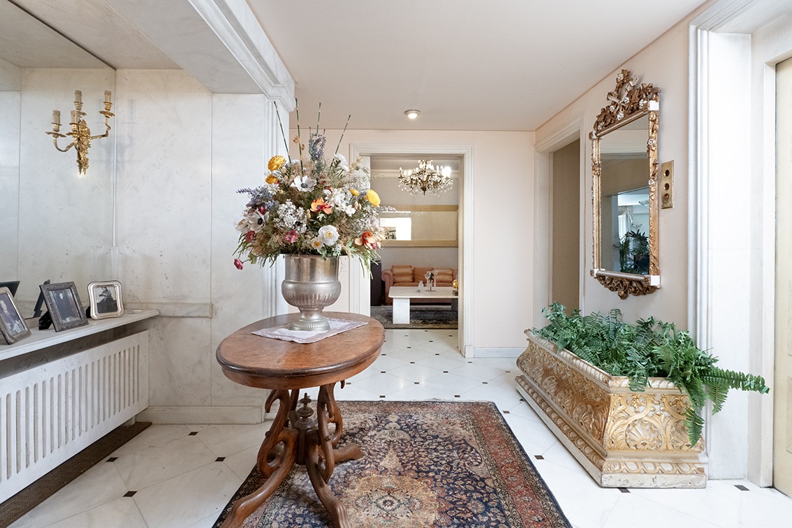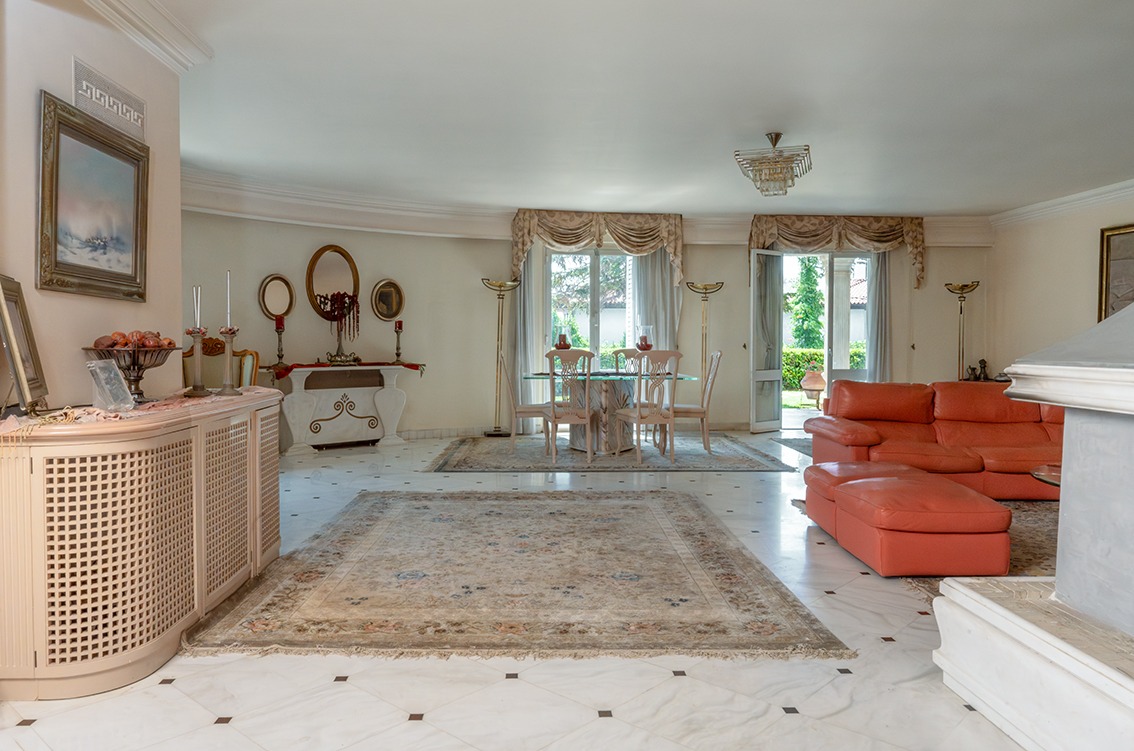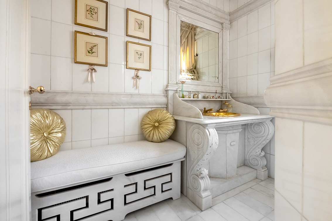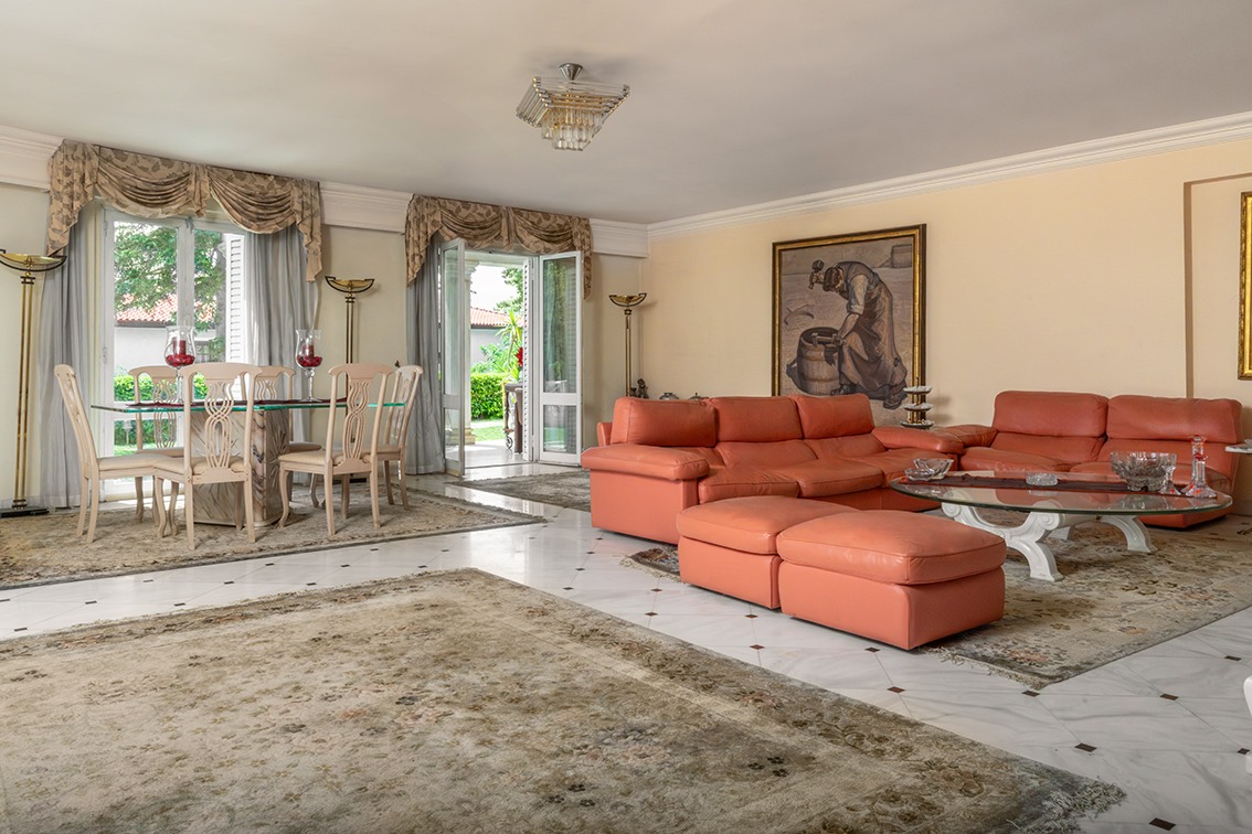 A marble master bathroom with jacuzzi, luxurious guest suites, a private study, a music room with piano, and expansive entertaining salons compose a setting of aristocratic refinement and comfort.