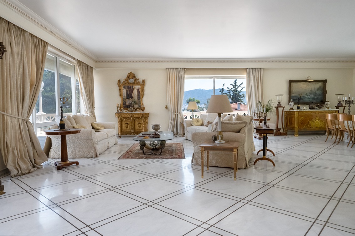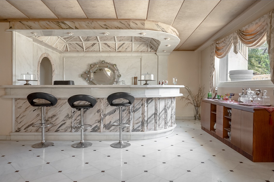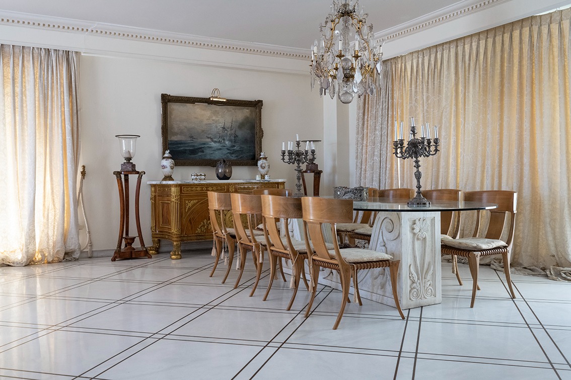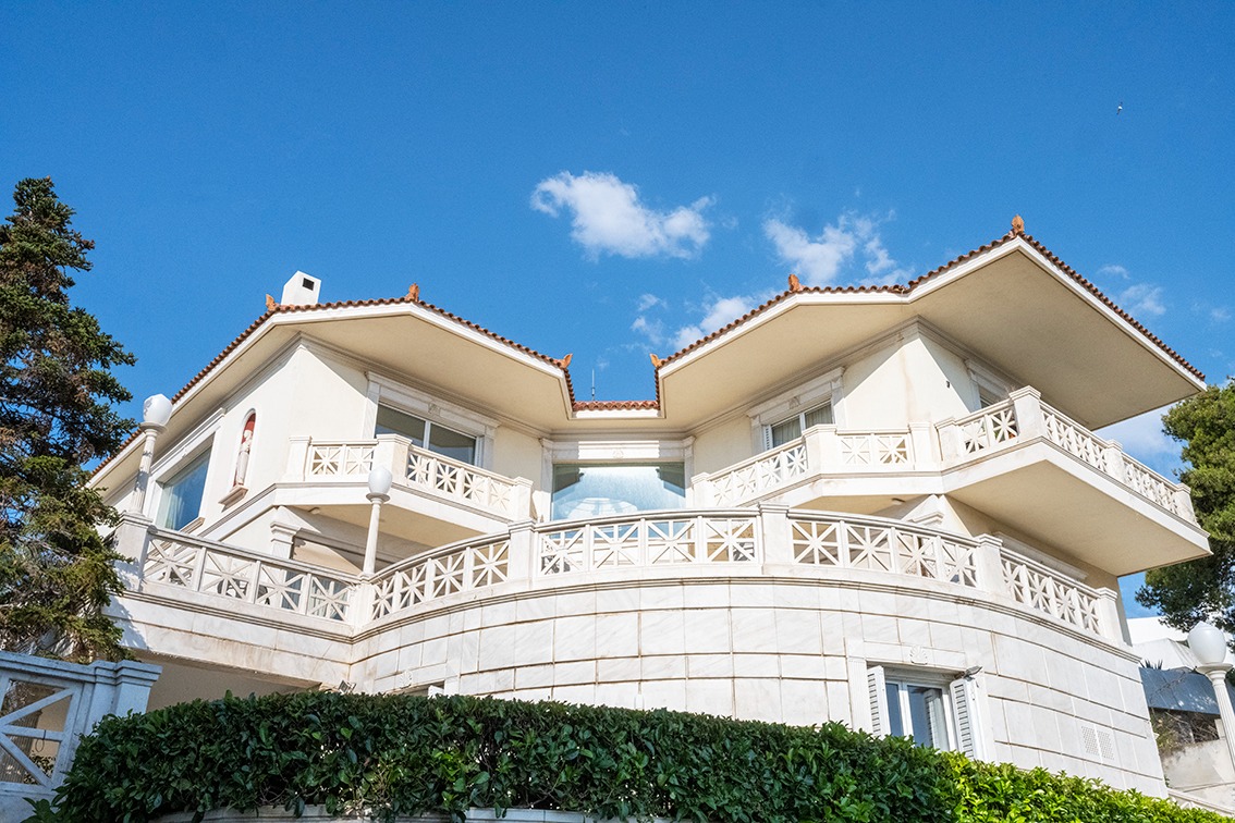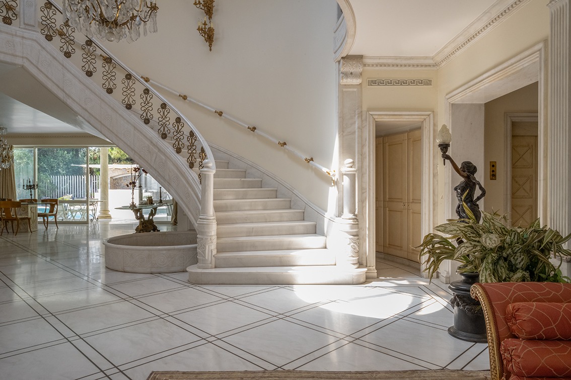 A rare example of marble-sculpted architecture in Attica. Interiors and exteriors are clad with collectible marbles originally sourced from the First National Bank of Greece.