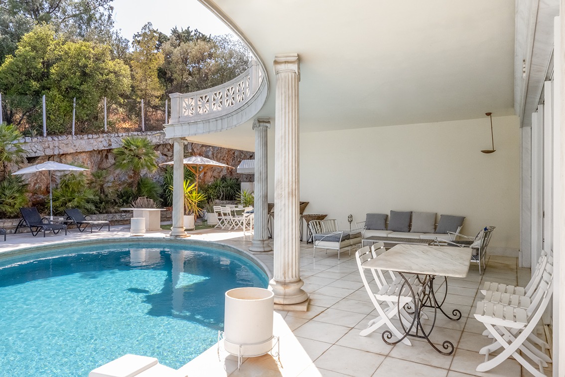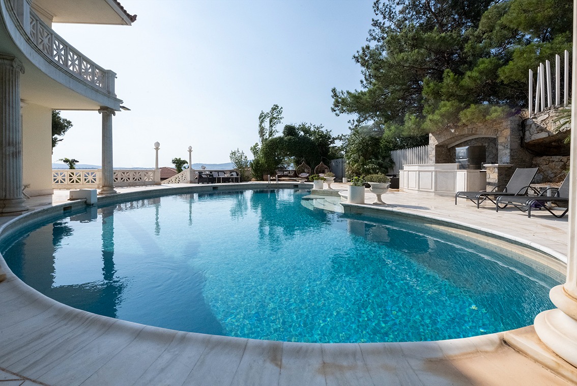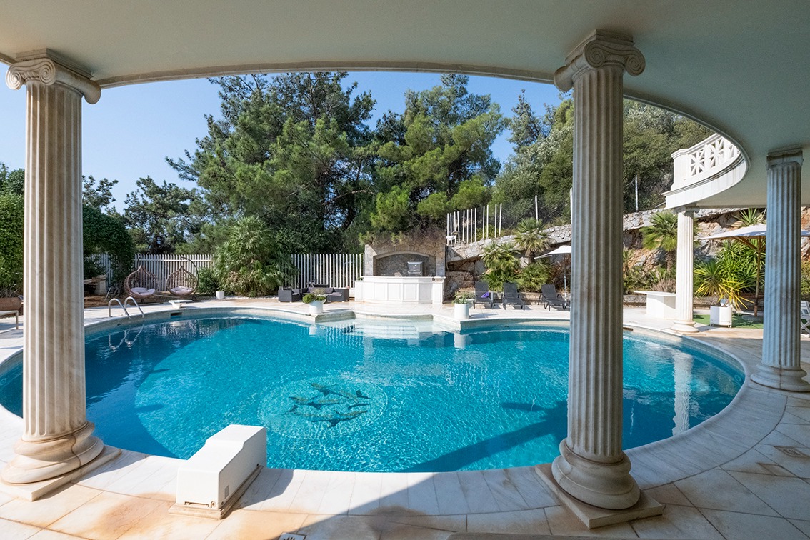 The 2,000 sq.m. landscaped grounds include a large swimming pool, mature gardens, outdoor lounges ideal for private events, and a professional-grade tennis court. Panoramic views and complete privacy elevate lifestyle quality and long-term value.