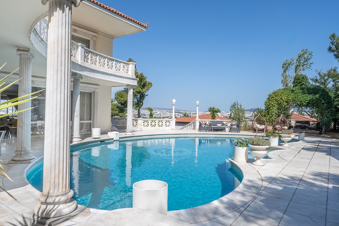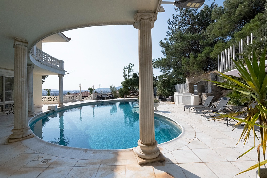 In the heart of Filothei’s most prestigious and secure enclave, stands a residence that is a true architectural work of art. The position affords sweeping views over Athens, from Lycabettus to Mount Hymettus. The neighborhood is defined by embassies, distinguished residences, and eminent cultural institutions (Theocharakis residence, a renowned Greek shipowner’s estate, the Karamanlis Foundation), offering discreet security, excellent access, and absolute tranquility.