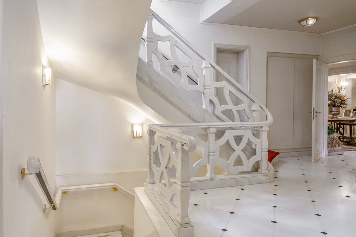 The original owner commissioned a professor–marble sculptor from the Polytechnic University, who worked exclusively for seven years to complete the marble elements. Entire marble blocks were purchased and specialized carving machinery was installed on-site to enable handcrafted precision. Notably, the interior marble balustrade of the main staircase required 1.5 years of continuous handcrafting — an unparalleled feat of marble craftsmanship.