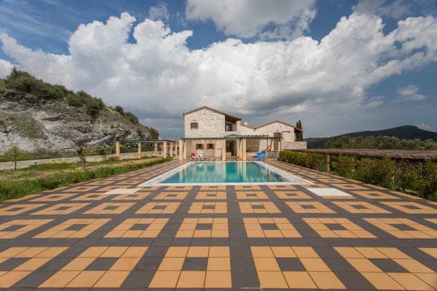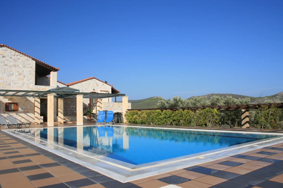 The estate has an area of 20 acres (20,000 sq.m.) and is overgrown with olives, almonds, figs, lemons, oranges, eucalyptus, oleanders, cypresses, bonsai bushes, etc. The villa with the pool is built in the most beautiful spot.