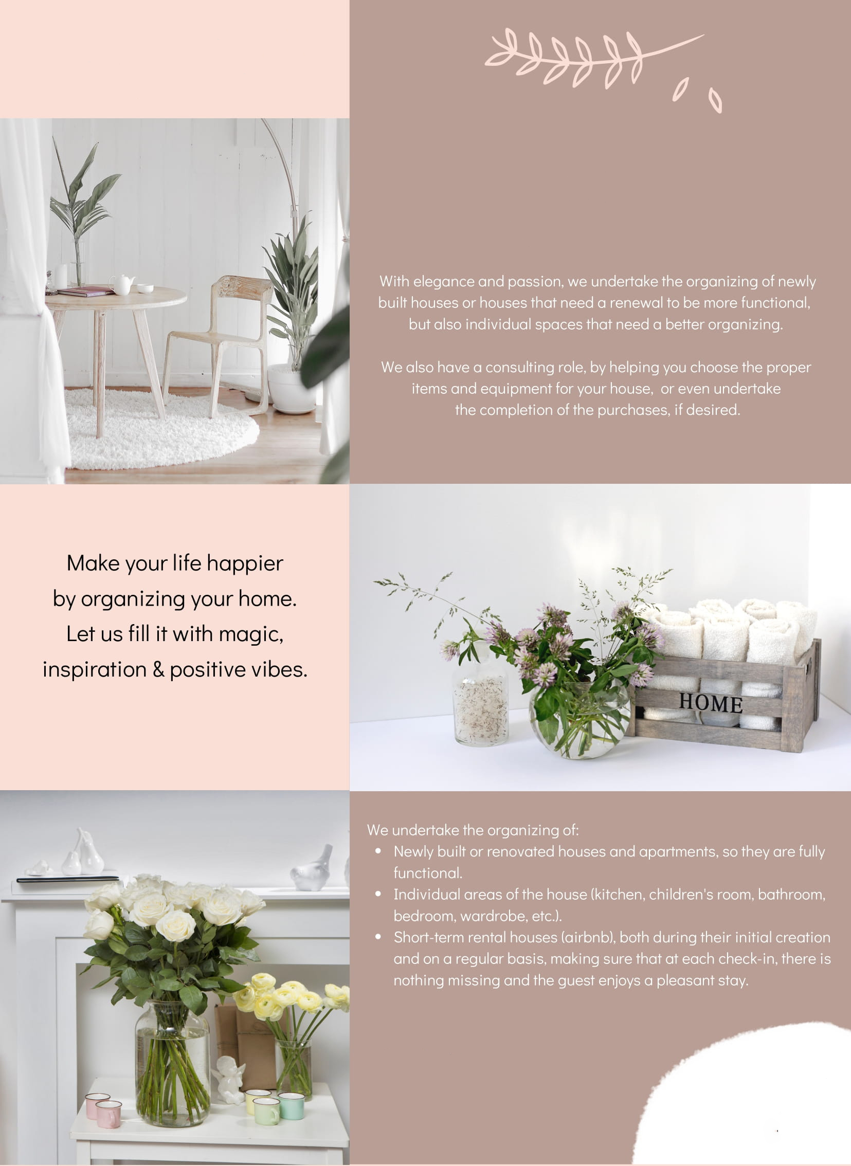 With elegance and passion, we undertake the organizing of newly built houses or houses that need a renewal to be more functional,